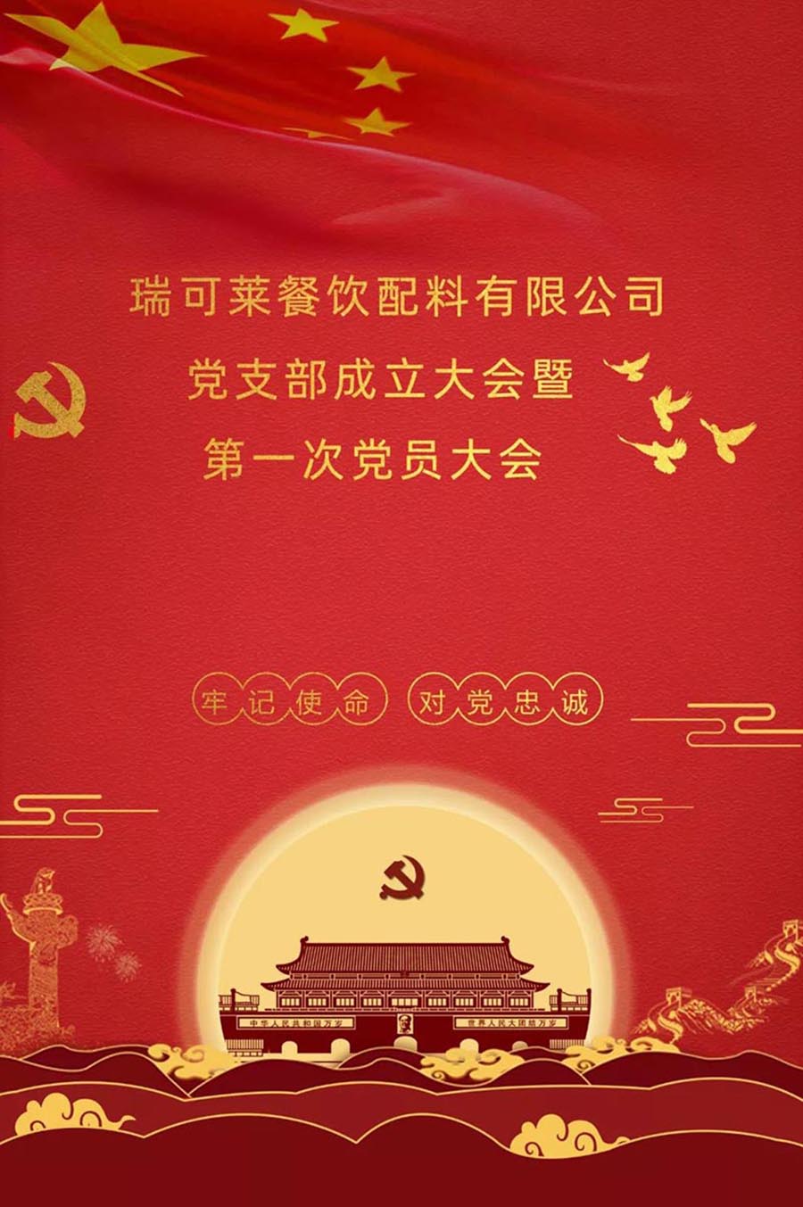 11月14日9:00時(shí),公司組織全體黨員在會(huì)議室召開(kāi)瑞可萊餐飲配料有限公司黨支部成立大會(huì)暨第一次黨員大會(huì)。